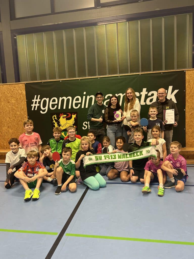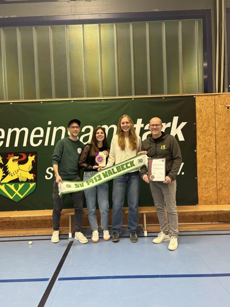 Dem SV Walbeck wurde eine besondere Ehre zuteil und mit dem Qualitätssiegel Kinder- und Jugendsport der Sportjugend NRW ausgezeichnet. Die Auszeichnung wurde dem Vereinsvorsitzenden Michael Roosen, dem Vereinsjugendleiter Daniel Aengenvoort und der stellvertretenden TTA-Jugendwartin Anna Croonenbroeck von Eva Greshake, der Fachkraft Jugend und Projekte im Kreissporbund Kleve, im Rahmen einer Trainingsstunde der TT-Jugend überreicht.